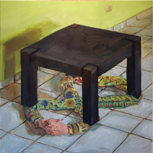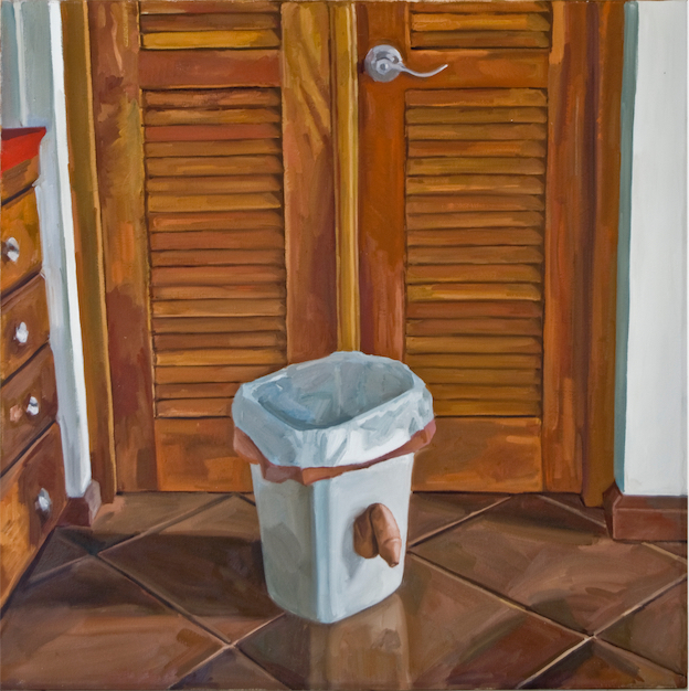 These paintings were created after Ringling College when I settled back into San Juan Puerto Rico after European Museum travel tour. The design desicion where motivated by Rene Magritte and Robert Gober. I wanted them to resemble installation sculptures, but stick to oil painting format. At the time I was training Yoga and was influenced by it's sculptural postures as seen from interiors.