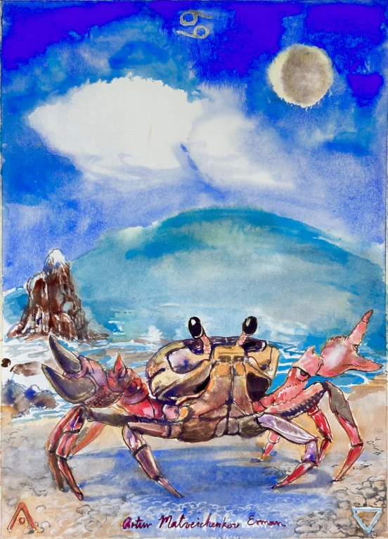 Cancer, watercolor on paper, 22" x 30"/55.88cm x 76.2cm
