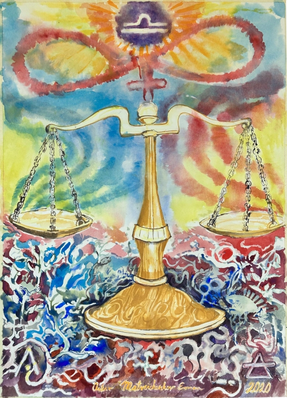 Libra, watercolor on paper, 22" x 30"/55.88cm x 76.2cm